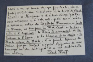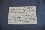 Carte de visite autographe, datée du 2 septembre 1936, adréssée au Docteur Georges Pitsch. Il l'adjure de se joindre « au petit groupe de mes amis... qui conaissant ma détresse, mon misérable état de santé...mes si lourdes charges familiales... veulent bien s'intéresser a ce livre de chants désolés... « Naufrage ».