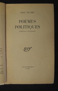 Paris, Gallimard 1948. In 12° broché, 54 pp. Enrichi de la signature autographe de Paul Eluard. Couverture abimée.