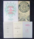 1 – Jarry (Alfred) - Statuts du collège de pataphysique suivis de la Harangue inaugurale de Sa Magnificience le Vice-Curateur Fondateur et des Messages de Leurs Magnificences le Baron Mollet, Opach et Lutembi / Statuts de l'ordre de la Grande Gidouille promulgués par Alfred Jarry. 4Ème édition. 2 – Promptuaire recapitulatif mais intégral des publications du collège de pataphysique. 3 – Du vrai du beau du bien . Chrestomathie Élémentaire De Pataphysique 4 – Une vie de chien par Senninger. 5 – Lettre sur l'Anthropofilouteria par Latis. Bon ensemble.