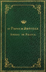 «Au prince Joinville, Amiral de France», surmontée de la couronne royale.
