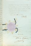 Manuscrit original des instructions rédigé à Paris à l'intention du général de Bourmont, Commandant en Chef de l'expédition d'Algérie, avant son départ pour Toulon. Signées par le Roi Charles X et le Prince de Polignac, Président du Conseil des Ministres, elles portent, intact, le très beau cachet royal fleurdelisé blanc et bleu.