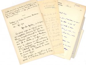 * Paul Fort : 3 L.A.S. à son ami Pierre Gompel. Nantes 1er juin 1918, copie annotée de sa lettre de candidature écrite en mai, « au cours de ma mission de propagande en 1918, lorsque je sollicitai le fauteuil d’Alfred Mézières. […]