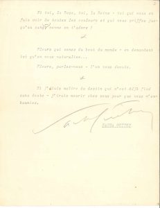 Sacha GUITRY. Tapuscrit avec signature et signes autographes, Grasse ; 2 pages et demie in-4. Bel hommage à la Grasse, ses fleurs et ses parfums. « Oh ! Pourquoi Grasse – et non pas : Grâce ? […] Grasse, vous êtes la patrie des...