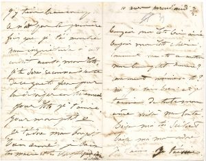 « La pauvre petite, ça fait pitié de la voir. Heureusement qu’il y a beaucoup de ressource dans la jeunesse car ce serait désespérant si elle restait dans cet état-là. J’attends mes créanciers tout à l’heure je vais me lever pour les recevoir. Demain, mon cher adoré, tu tâcheras de me mener voir mon pauvre père, n’est-ce pas, mon bon Toto »…