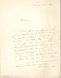 forcé de me défaire. Dans le cas où M. Javal voudrait donner suite à l’ouverture qu’il m’a fait faire dites-lui que je suis à ses ordres pour les renseignements tous les jours ici chez moi mais seulement d’aujourd’hui à huit jours. Plus tard je serais absent »…