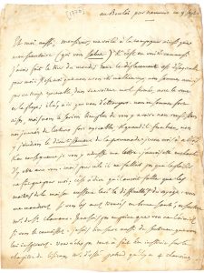 Sur le feuillet d’adresse, Condorcet a noté de sa main une demi-page d’équations : « Supposant A’ = 1 + x, B’ = 1 – x »… etc.