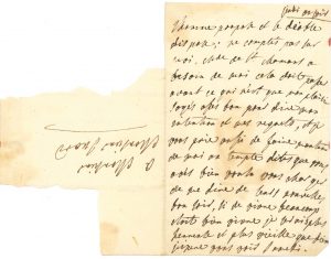 de St Chamans a besoin de moi, cela doit passer avant ce qui n’est que mon plaisir. Soyés asses bon pour dire mon intention et mes regrets, et je vous prie aussi de faire mantion de moi au temple. Dites que vous avés bien voulu vous charger de me dire de leurs nouvelles. Bon soir, si de vivre beaucoup etoit bien vivre je serois plus heureuse et plus vieille que Dieu ». Elle espère le voir samedi…{CR}