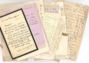 LITTÉRATURE. Environ 100 lettres, la plupart L.A.S. adressées à Maurice Levaillant, 1909-1934 ; formats divers, nombreuses enveloppes, plus quelques cartes de visite autographes. Léo Larguier, Henri Lavedan (6), Charles Le Goffic (4),...