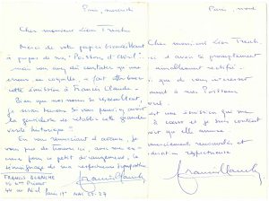 Francis BLANCHE (1921-1974). 2 L.A.S., [18 novembre et 8 décembre 1953], à Léon Treich à L’Aurore ; 2 pages in-8, adresses. Rectificatif au sujet de son émission de radio Poissons d’Avril, diffusée sur Radio Luxembourg et Radio...
