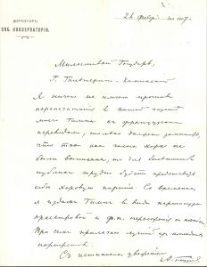 Alexandre GLAZOUNOV (1865-1936). L.A.S., Saint-Pétersbourg 24 février 1907, à M. Kaminsky ; 1 page in-4 à en-tête du Conservatoire de Saint-Pétersbourg ; en russe (traDuc tion jointe). Il n’a rien contre l’impression dans le journal...