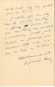 Reynaldo HAHN (1875-1947). L.A.S., Toulon [24 mars 1941], à Robert de Saint-Jean, à New-York ; 2 pages in-8, enveloppe. Il le prie de faire parvenir une lettre aux Chautemps, « à qui j’écris parce qu’ayant été de leurs amis quand...
