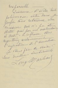 Marguerite LONG (1874-1966) - Pianiste et pédagogue. L.A.S., 5 juin 1955, [à Bernard Gavoty] ; 2 pages in‑8. Différend après une émission de télévision de Gavoty avec Samson François, en réponse à une lettre de Gavoty (l.a.s. de...