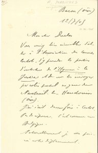 Albéric MAGNARD (1865-1914). L.A.S., Baron (Oise) 12 juillet 1905, à son cher Duc los ; 1 page et demie in-8. « Vous seriez bien aimable d’aller à l’Association des Concerts Cortot, d’y prendre les parties d’orchestre de l’Hymne...