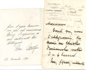 répétitions de Manon à l’Opéra-Comique, [fin 1893]), Pierre-Barthélemy Gheusi (invitant Alpi à venir plus souvent à l’O.C., 1933), Charles Malherbe (à un collègue, 1910).