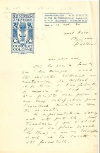 Ploujean 10 septembre 1930. Félicitations sur la brillante exécution de Lou Renegat au centenaire de Mistral : « je suppose que tout cela n’a pas été sans peine et non sans satisfaction pour l’excellent musicien que tu es resté. Les représentations d’Orange ont été passables, seul Tannhauser (qui n’était pas à sa place devant le Mur) a eu un triomphal succès et sa recette a été formidable »…