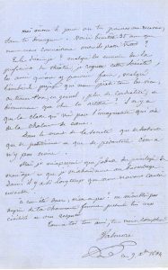 Malgré les ennuis de la profession du théâtre, je regrette cette société, les amis qu’on y pouvait faire, malgré l’imbécile préjugé qui nous prête tous les vices, où trouve-t-on, en Général, plus de cordialité, de dévouement que chez les artistes ? Il n’y a que la classe qui vit par l’imagination qui ait de la chaleur de cœur. Dans le monde de la société que de sécheresse que de positivisme et que de pédantisme c’est à n’y pas croire »…