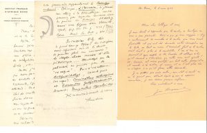 Monod (3), J. Pellegry, Émile Roubaud (2), Paul Wintrebert (2), etc. Plus divers documents et minutes dactyl. concernant les candidatures de Dollfus au poste de professeur et à l’Académie des Sciences.
