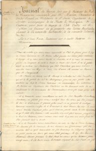 → Très intéressant journal de voyage du Mascarin tenu par le lieutenant Jean Roux, du 18 octobre 1771 au 7 mai 1773, retraçant le périple du vaisseau Le Mascarin, depuis Port-Louis de l’Isle de France [Maurice], sous le commandement de Marion-Dufresne, qui laissera sa vie en Nouvelle-Zélande, jusqu’à son retour au port de départ.