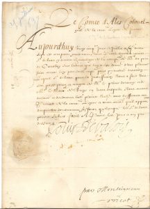 •P.S. par Louis de Valois, Comte d’Alès, concernant un déserteur (1637).