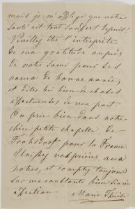 Thérèse », Frohsdorf 7 janvier 1872, à M. Villaret de Joyeuse, à Versailles ;