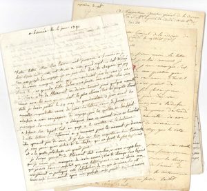 Autriche et Angleterre (écrites d’Hermée, Bruxelles, Gultz près Coblence, Trèves, Bilhe, Küppenheim, Düsseldorf, Dortmund, Oirschot, Vienne, Aix-la-Chapelle, Hadley, Londres, Plombières, Oberustinen) évoquant les craintes du départ, l’éloignement, l’ennui, la pénurie et « l’inconstance des Français », les malheurs de Marie-Antoinette, le voyage du comte d’Artois en Russie, les carmagnoles, la scélératesse et la férocité sanguinaire des sans-culottes, des affaires militaires (Aix-la-Chapelle, les Autrichiens, la grande armée prussienne), et nommant Brissot, Robespierre, le Général Clairfait, le Prince de Condé, le Prince de Saxe Cobourg, Mme de Polignac, le Vicomte de Choiseul, le Comte de Chalais, le Prince de Salm, etc.