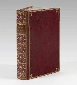 orné de fleurons, petits fers dorés et roulette à l'oiseau en tête et en queue, pièce de titre olive, filet sur les coupes, roulette intérieure, tranches dorées (reliure de l' époque).