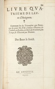 (Jean Balsamo, De Dante à Chiabrera. Poètes italiens de la Renaissance dans la bibliothèque de la Fondation Barbier-Mueller, tome II, n° 284. Giuseppe Frasso, “La traduction du Canzoniere de Vasquin Philieul”, in Les poètes français de la Renaissance et Pétrarque. Etudes réunies par Jean Balsamo, Droz, 2004, pp. 203-228. Barbier-Mueller, Ma bibliothèque poétique, Ie partie, n° 60. Brunet IV, 562.
