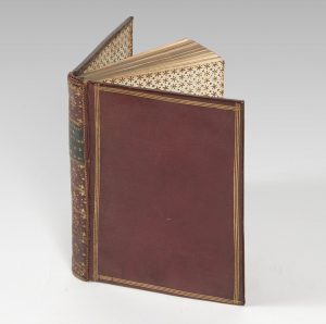 coupes, roulette intérieure, doublures et gardes de papier doré d'Augsbourg, tranches dorées sur marbrure (reliure de l' époque).