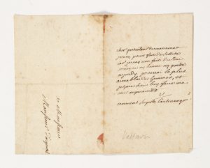 VOLTAIRE. Billet adressé à M. d'Argental. Sans lieu ni date. Billet autographe signé “V” ; 1 page in-12, nom du destinataire au verso. Charmant billet humoristique adressé au comte d'Argental. “Cher protecteur de mon ame je n'ay point...