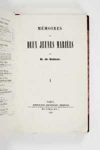BALZAC (Honoré de). Mémoires de deux jeunes mariés. Paris, H. Souverain, 1842. 2 volumes in-8 [214 x 134 mm] de 355 pp. ; (2) ff., 325 pp. : demi-maroquin tabac à grain long avec coins, dos lisses ornés en long d'un décor rocaille doré avec...