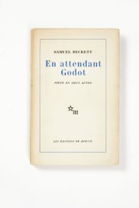BECKETT (Samuel). En attendant Godot. Pièce en deux actes. Paris, Éditions de Minuit, 1952. In-12 [188 x 121 mm] de 163 pp., (2) ff. de justification de tirage et d'achevé d'imprimer : broché, boîte-étui en maroquin bleu de...