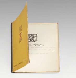 BORGES (Jorge Luis) Luna de enfrente. Buenos Aires, Proa, 1925. In-4 [286 x 240 mm] de 42 pp., (1) f. d'achevé d'imprimer : demi-toile noire, plats de papier jaune imprimé en rouge et noir sur le premier (reliure de l' éditeur). Édition...