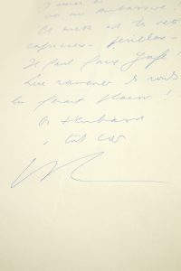 Lucette t'embrasse, elle est bien vivement touchée par ton amitié si active, si sensible. Elle ne croit qu' à tes conseils. Pardon encore pour les fâcheux de tous poils qui te relancent - pour mon bien! [...] Tu as toujours fait merveille. Tu sais tout ce que je pense. Bien sûr que Jonquières ne va pas faire époque! Qu' il porte ses sous. C'est tout. Et de même d'ailleurs pour le Voyage chez Frémenger.”