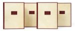 f., 1 planche ; 118, (1) f., 1 planche ; 153 pp., 1 planche ; 171 pp., (1) f., 1 planche : maroquin lie-de-vin, dos lisses, plats recouverts de parchemin avec, au centre, pièce de titre de maroquin lie-de-vin, filet doré en encadrement, non rognés, têtes dorées, couvertures et dos de satin mauve conservés, étuis (Pierre-Lucien Martin).