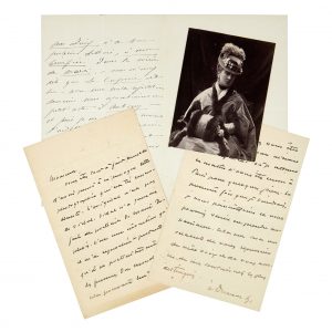 DUMAS Fils (Alexandre). Lettre relative aux portraits de Marie Duplessis. Sans lieu ni date [vers 1848]. Lettre autographe signée “a Dumas f.” ; 5 pages in-8. ►Intéressante lettre évoquant les rares portraits de Marie Duplessis, le...