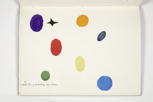 Premier livre de Lise Deharme (1898-1980) et premier livre illustré par Joan Miró : 8 pochoirs en couleur exécutés par Saudé d'après les gouaches de l'artiste.