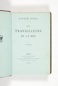 HUGO (Victor). Les Travailleurs de la mer. Paris, Librairie Internationale, A. Lacroix, Verboeckhoven et Cie, 1866. 3 volumes in-8 [230 x 151 mm] de VIII, 328 pp. ; (2) ff., 327 pp. ; (2) ff., 279 pp. : chagrin brun, dos à nerfs filetés or et...