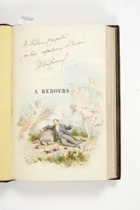 (Bibliothèque nationale, En français dans le texte, 1990, n° 312 : “Huysmans donne aussi à son personnage des goûts proches des siens, que ce soit en littérature ou en art. Il lui fait, entre autres, admirer Baudelaire, Mallarmé et Verlaine, Gustave Moreau et Redon : écrivains et artistes encore peu connus du public et qu'il révèle à beaucoup.”- Connolly, One Hundred Modern Books from England, France and America 1880-1950, Austin, 1971, n° 4.)
