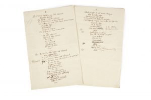 JARRY (Alfred). [Air de la tabatière.] Sans lieu ni date [vers 1904]. Manuscrit autographe ; 1 page ½ in-folio. “C'est un' tabatière, une boîte charmante de poudre odorante par laquell' l'esprit s' éclaircit. Seigneurs de la cour et dames...