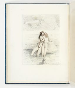 Exemplaire d'artiste sur grand vélin d'Arches à la forme portant la signature de Pierre Louÿs en filigrane enrichi du fac-similé de la lettre de l'auteur et d'une suite de 23 eaux-fortes en noir avec remarques.