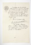 — Note autographe donnant la recette improbable de l'Elixir Pasteur, inspirée par les expériences sur la rage de Pasteur, méthode par laquelle tout accident a été évité pendant le dernier congrès, en référence au congrès de Berlin de février 1885 entérinant le partage de l'Afrique entre les pays coloniaux (Sans lieu ni date [début avril 1885]. 1 page ¾ petit in-12).