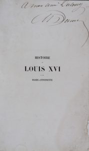 On joint, du même, même reliure : Histoire de Louis XVI et de Marie-Antoinette. Tome premier (seul), illustré de 14 planches (mouillure angulaire en début de vol., titre et faux-titre lacunaires en pied). Envoi signé d'A. Dumas au même destinataire (celui-ci est en meilleur état).