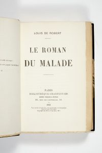 ROBERT (Louis de). Le Roman du malade. Paris, Bibliothèque Charpentier, Eugène Fasquelle, 1911. In-8 [188 x 125 mm] de VII pp., 326 pp., (1) f. d’achevé d’imprimer : demi-maroquin tête-de -nègre à coins, dos à nerfs orné de caissons...