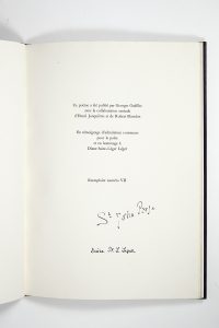 TIRAGE UNIQUE À 45 EXEMPLAIRES NUMÉROTÉS SUR PAPIER MAILLOL À LA FORME, SIGNÉS PAR LE POÈTE ET DIANE SAINT-LÉGER LÉGER (Nº VII).