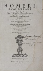 *** [Livres du XVIe s.]. HOMERE. Homeri quae extant omnia, Ilias, Odyssea, Batrachomyomachia, Hymni, Poematia aliquot… cum latina versione… Io. Spondani… commentariis… Basileae, Eusebii Episcopii, 1524, 2 parties en un fort vol. in-folio,...