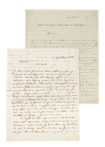 [STENDHAL]. LEVAVASSEUR (Alphonse). Deux lettres adressées à Henri Beyle. Paris, 2 juillet 1832 – 8 août 1833. 2 lettres autographes signées “A Levavasseur” : 1 page ½ et 2 pages in-4. AUX ABOIS, EN DÉPIT DU SUCCÈS DE LE ROUGE ET...