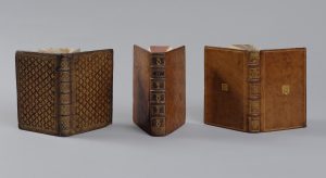 plats et contreplats ornés d'un semé de fleurs-de-lis doré, bordé d'une roulette aux plats, tranches dorées (coiffe de tête, coins et bords du plat sup. usés, mouillure marginale modérés, qq. marges tachées ou salies, mq. de papier en marge p.115 mais état très convenable, grand de marges, jolie reliure). Provenance : Hôtel d'Armaillé puis château de Clays.