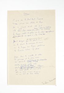 ON JOINT LE MANUSCRIT DE PREMIER JET DE DEUX POÈMES DU RECUEIL : GARNIS ET UNE LUEUR.