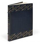 dorés sur les plats se prolongeant sur le dos, coupes filetées or, bordure de maroquin de même teinte sur le contreplat, ornée de filets droits et courbes dorés et ronds à froid, doublures et gardes de moire verte, tranches dorées sur témoins, couverture et dos conservés (Gruel).