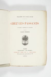 VILLIERS DE L’ISLE-ADAM (Auguste de). Chez les passants. Fantaisies, pamphlets et souvenirs suivi de pages inédites. Paris, Georges Crès et Cie, 1914. In-8 [197 x 133 mm] de 302 pp., (1) f. d’achevé d’imprimer : broché, couverture de...